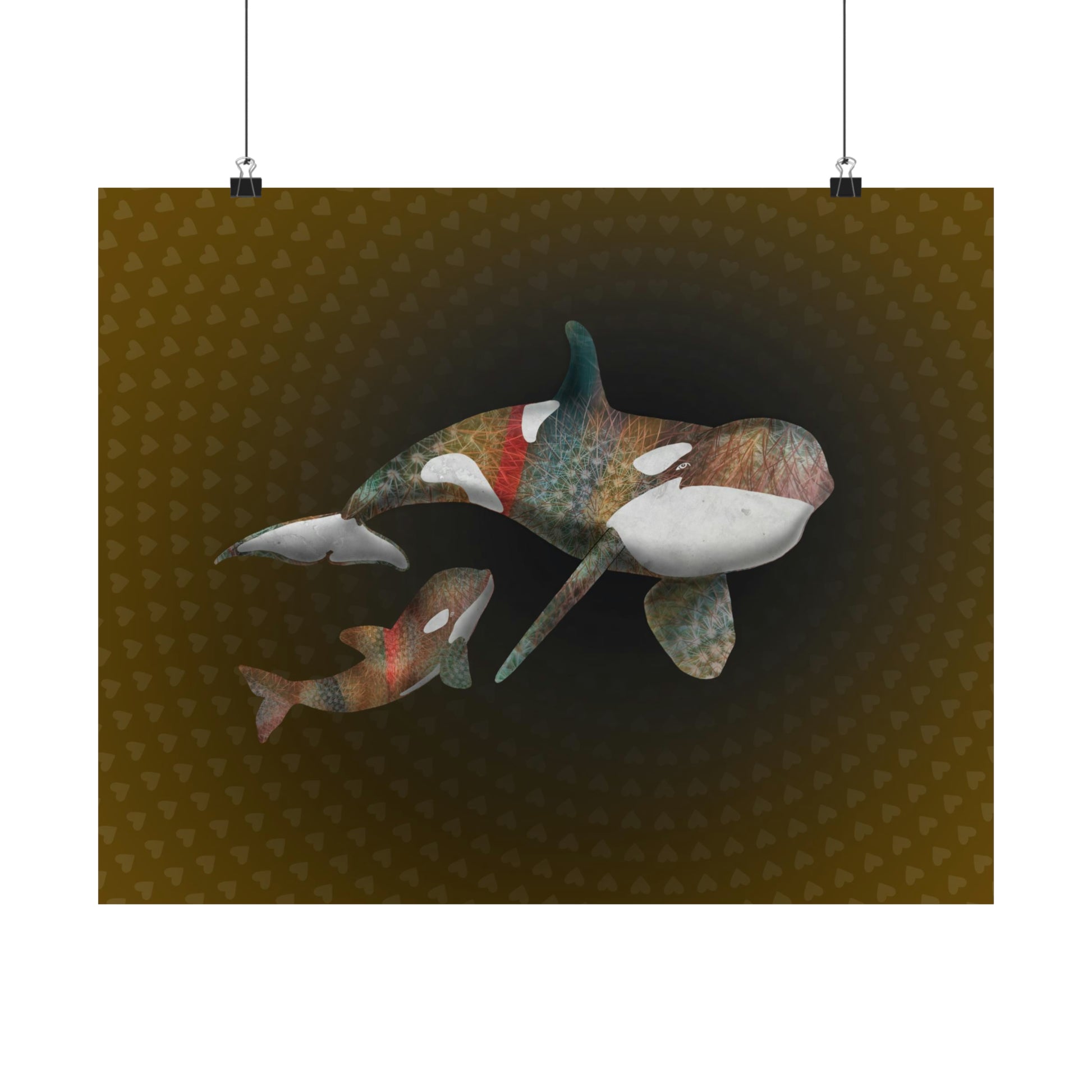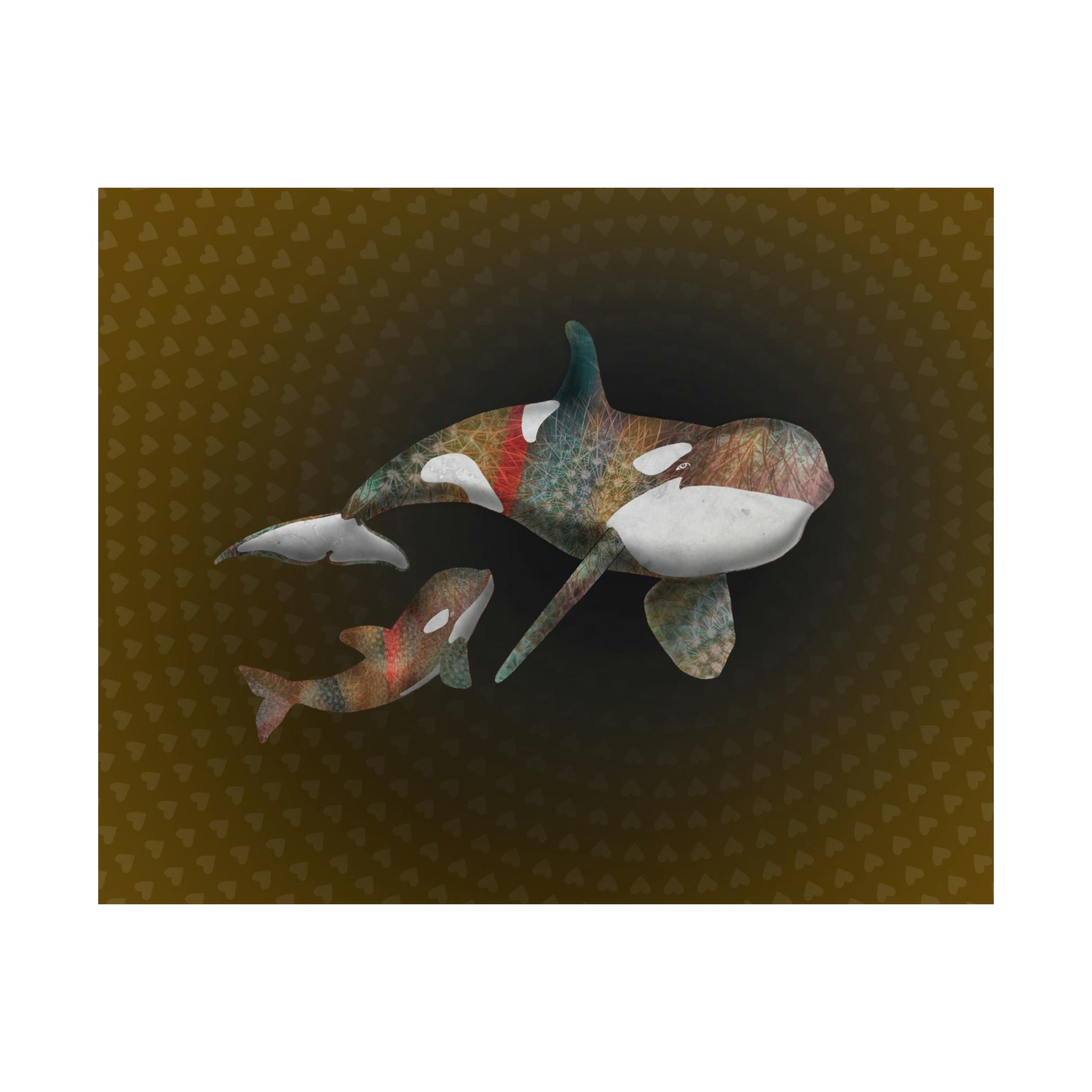 "Mother and Baby Orca" is an original digital art print featuring a tender moment between a mother and baby orca. The artist blends her drawings with photography. This artwork incorporates images of a cactus and glass art from the Corning Museum of Glass. This unique fusion of elements creates a harmonious composition, making it a perfect addition to nurseries, children's rooms, or as a heartfelt gift for killer whale enthusiasts. Embodying the essence of maternal love and the beauty of nature, "Mother and Baby Orca" is a poignant celebration of the bond between parent and child in the animal kingdom.
