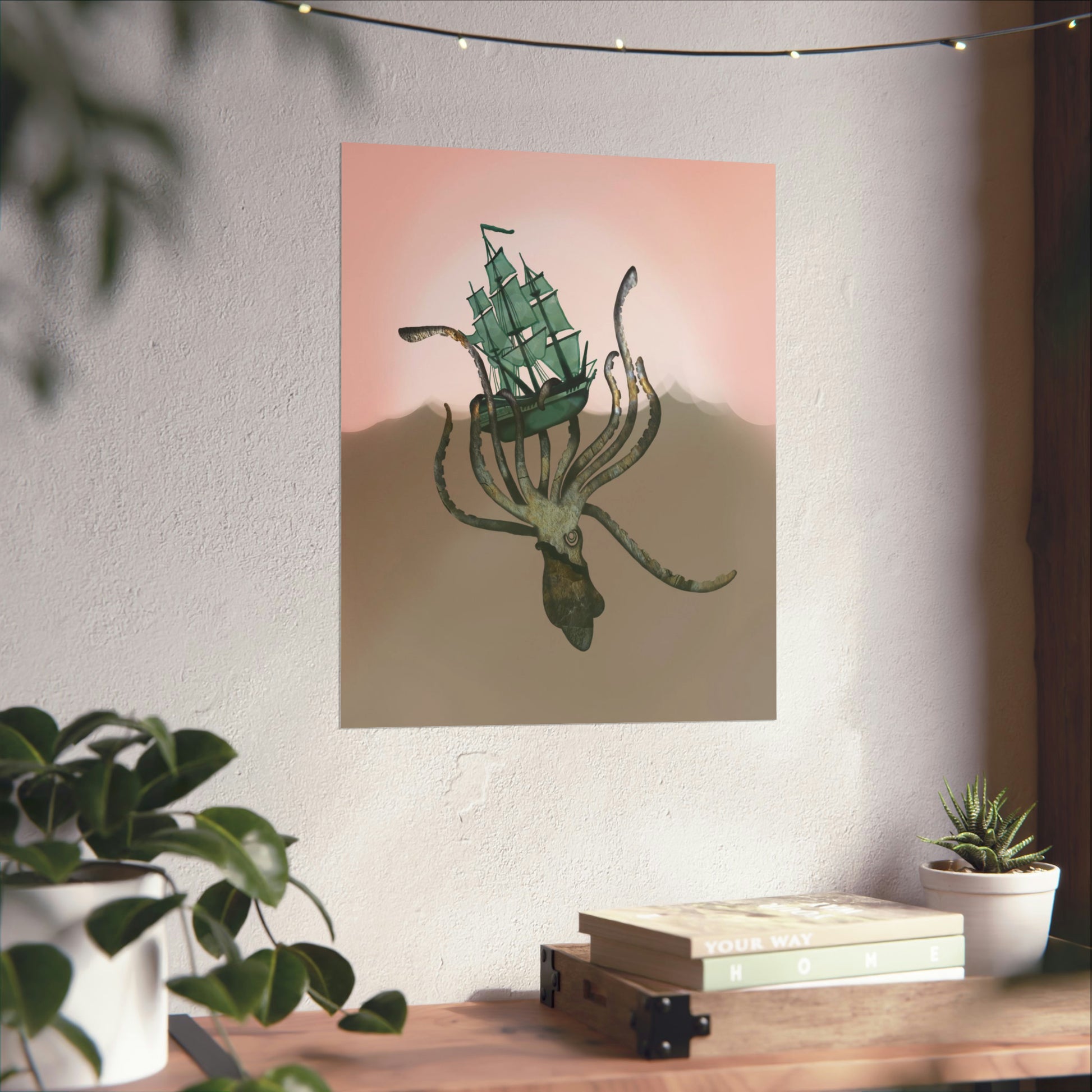 Giant Squid Attacks Boat - Pink Waters