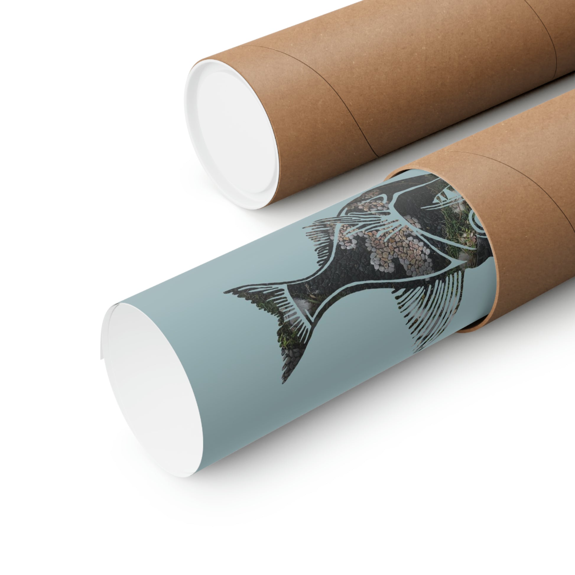 This art piece is a digital drawing of the deep ocean Lantern Fish that features a photo of a mosaic garden floor in Turks & Caicos This unique piece of art is perfect for nature-lovers who want to spruce up their home décor with a beautiful representation of the marine world.